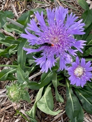 Atala butterfly on a Stokesia laevis (Stokes Aster)