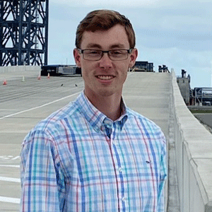 Zachary Ewing is a Florida-based fluids design engineer for Test and Facility Operations at Blue Origin, where he works with pneumatic and cryogenic commodities, such as nitrogen, helium, gaseous oxygen, and gaseous hydrogen, for launch sites and test stands in Florida, West Texas, and Kent, Washington.