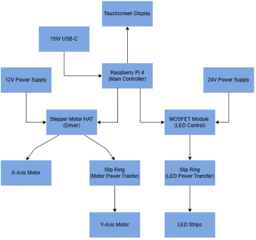 The CALI system was developed using an iterative design process that combined mechanical fabrication, electronics integration, and software testing to create a functional assistive feeding prototype. The project was built around the AR4 robotic arm platform, with custom-designed components modeled in CAD and fabricated primarily through 3D printing to support rapid prototyping, low cost, and easy modification. Multiple utensil-mount concepts and support components were designed, tested, and refined to improve fit, usability, and overall appearance, including custom housings and attachments tailored to the system’s needs. On the electrical and control side, the design integrated depth-sensing hardware, embedded control components, and a custom interface to connect sensing, processing, and robotic motion into a single system. Throughout development, subsystems were repeatedly evaluated and adjusted based on testing results, allowing the team to improve reliability, functionality, and manufacturability while maintaining a modular design approach.